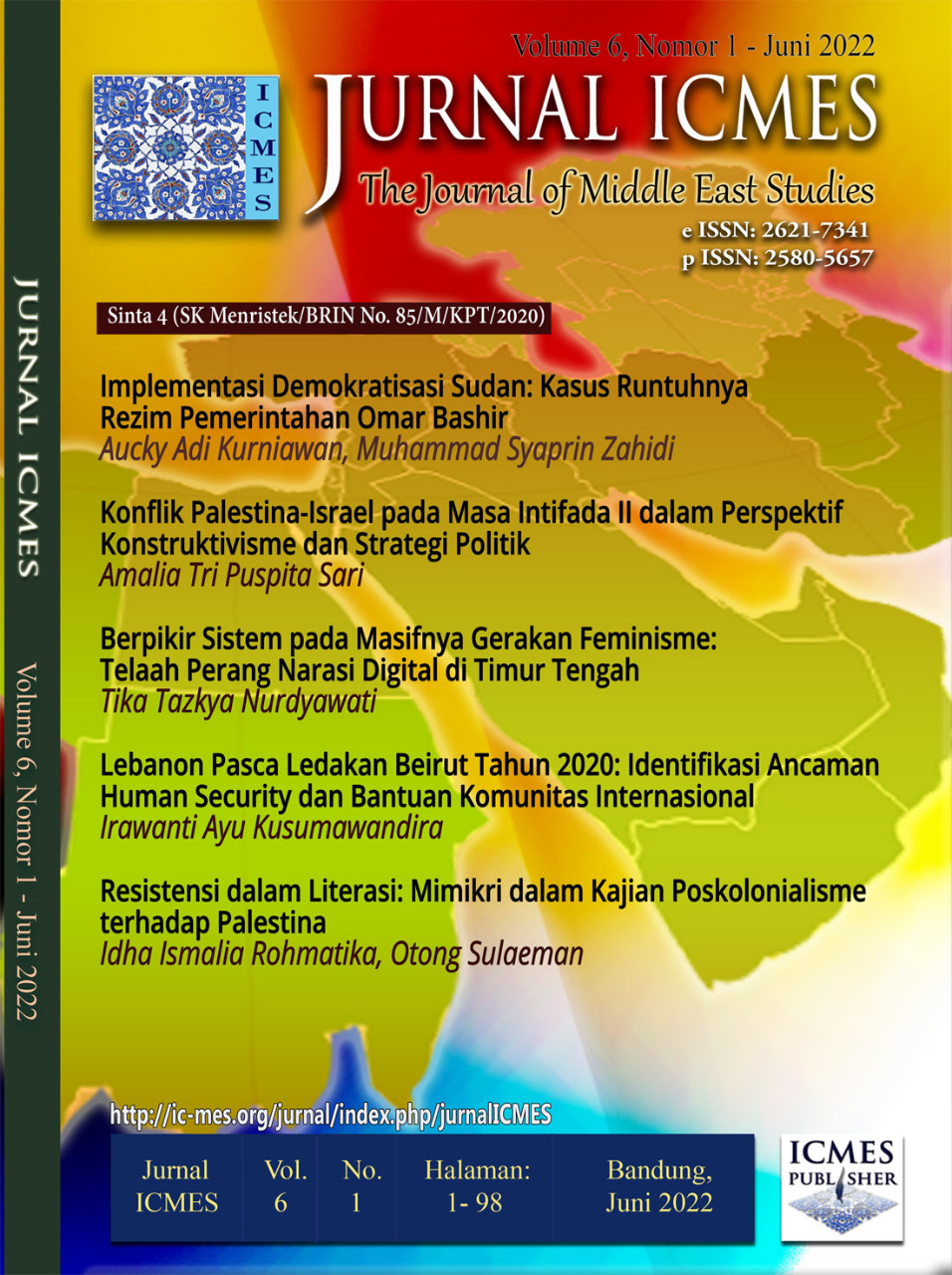 This issue discusses various dynamics in the development of the Middle East, namely the process of democratization of Sudan after the collapse of Omar Bashir's government, analysis of the Palestinian-Israeli conflict during the Intifada from a constructivist perspective, a study of the digital narrative war in the Middle East on the issue of feminism, as well as a study of the Beirut explosion in 2020. Finally, there is an interesting study regarding Palestinian resistance to literacy. We hope the results of these studies will be useful in developing Middle Eastern studies.